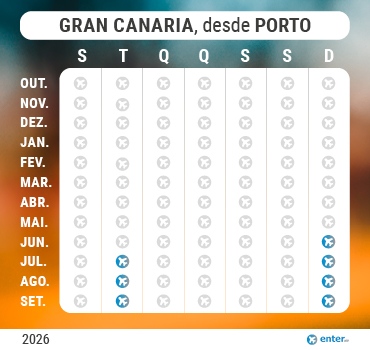 Embora seja evidente que se quiser passar mais tempo na ilha, podemos também fornecer-lhe os melhores voos e hotéis em Gran Canaria para a sua estadia. E mesmo que esteja a pensar numas férias multi-destino, combinando esta ilha com outra do arquipélago das Canárias, podemos também oferecer-lhe essa possibilidade.