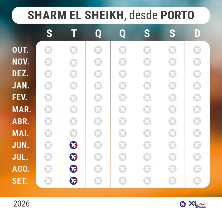 Voos diretos desde o Porto para Sharm El Sheikh.
